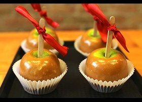 Dip the apples in the toffee and leave to set on a board/surface lined with baking paper
